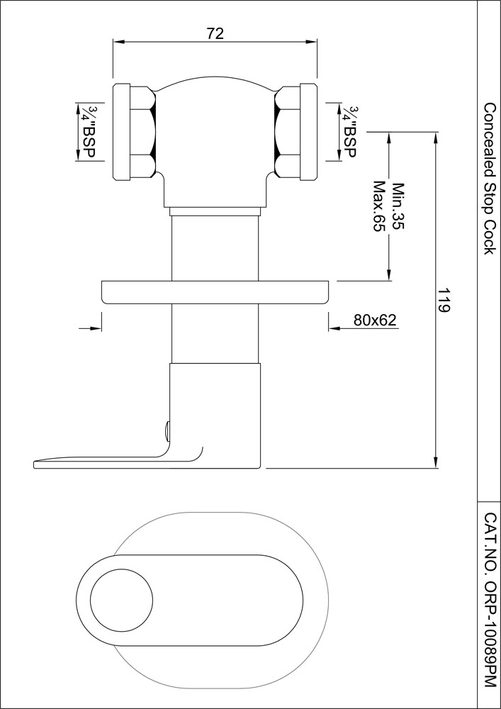 In-wall Stop Valve with Adjustable Wall Flange, Size 20 mm (With Exposed and In-wall parts)
